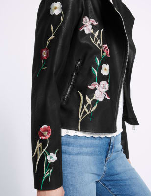 Floral Embroidered Studded Detail Biker Leather Jacket Urban Mist UK Very well made.